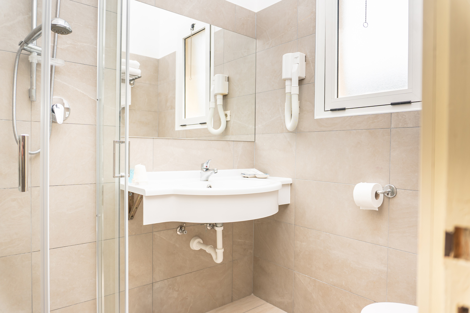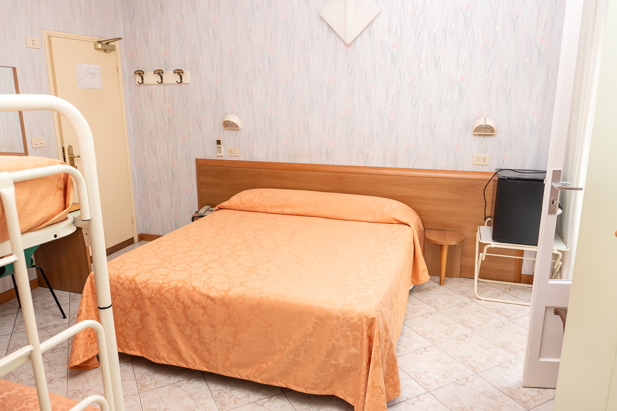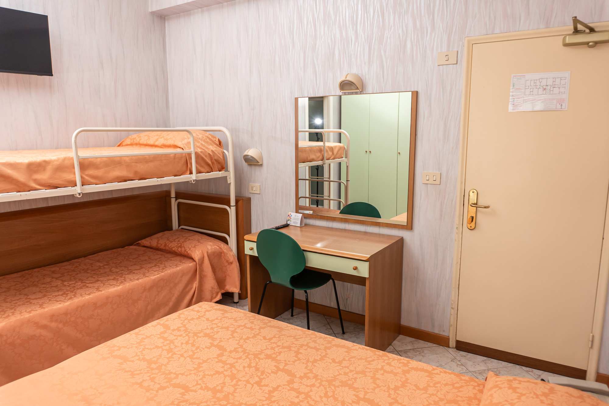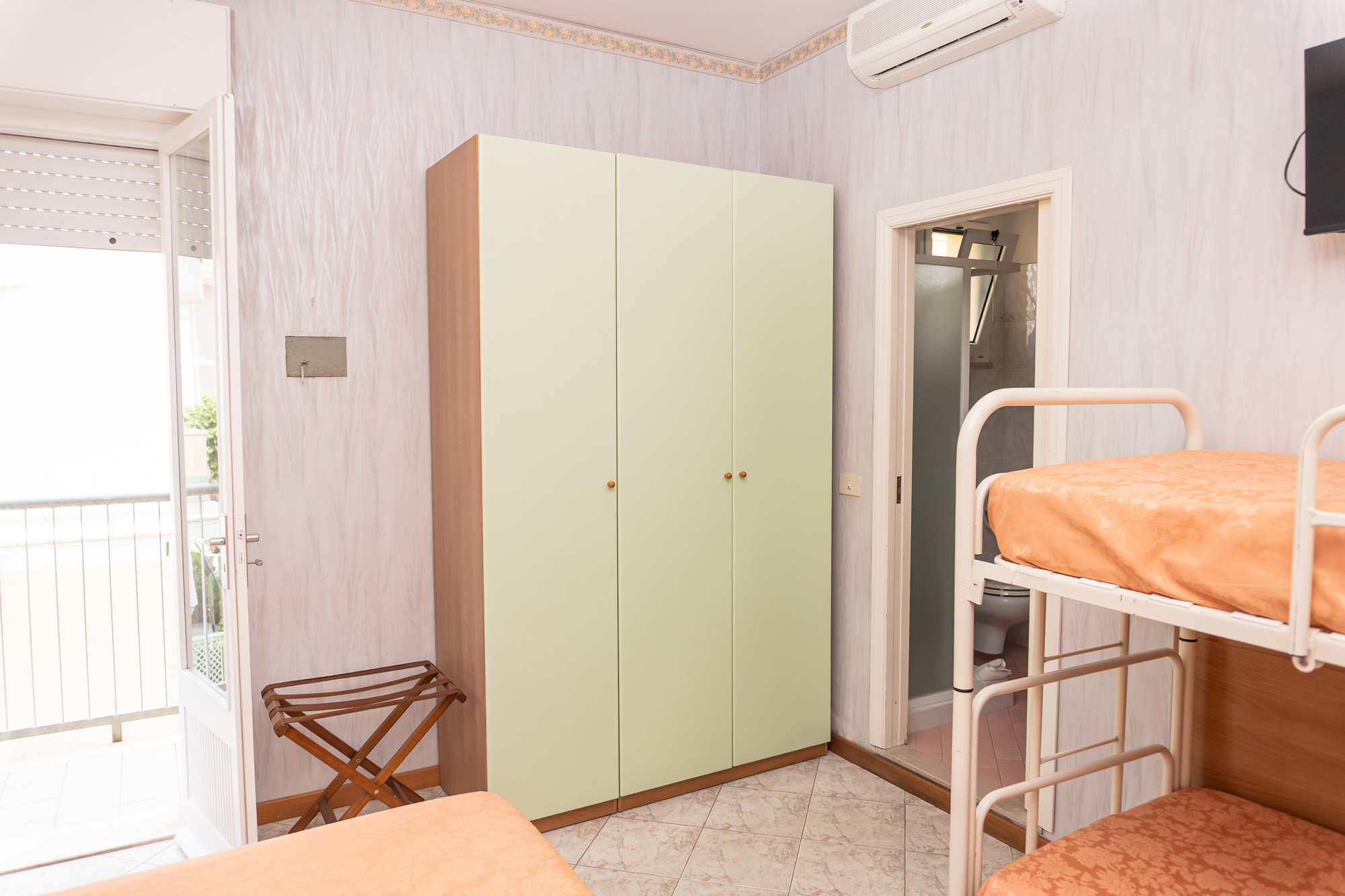Si vous avez besoin de plus d'espace, choisissez l'une de nos Family Rooms à Riccione. Elles sont également équipées d'un balcon privé, peuvent accueillir jusqu'à 5 personnes et comprennent un lit double, un lit superposé et un lit simple ou un berceau. À l'intérieur, vous trouverez également des équipements destinés aux plus petits (barrières de lit et baignoire pour bébé) pour des vacances sûres et adaptées à chaque famille.